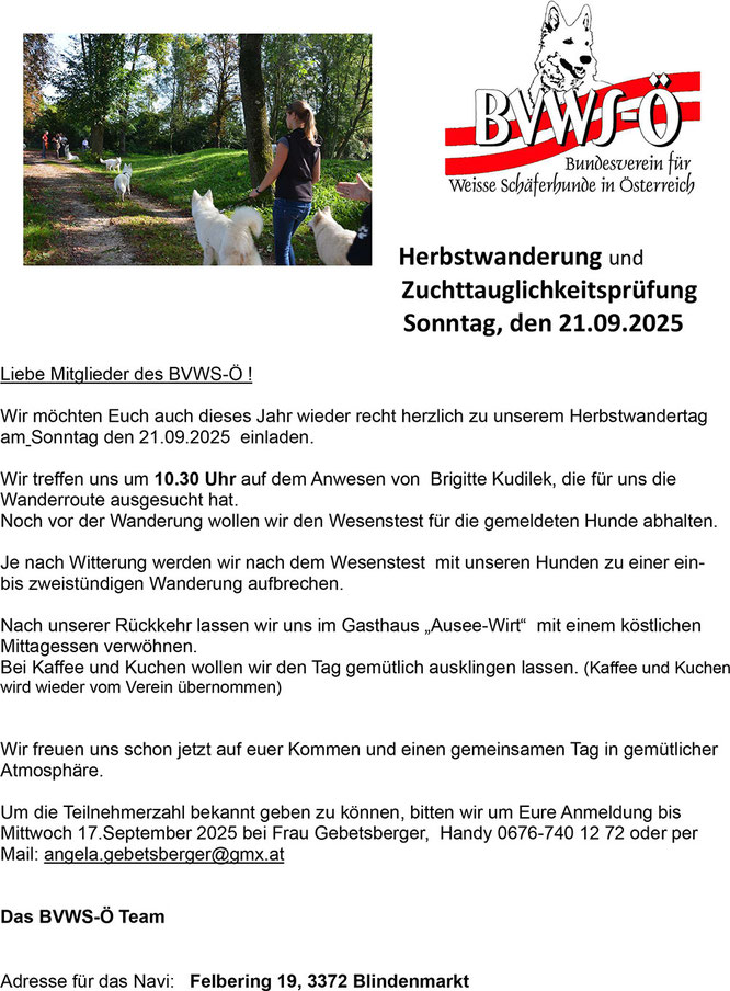 Einladung Herbstwandertag & Zuchttauglichkeitsprüfung